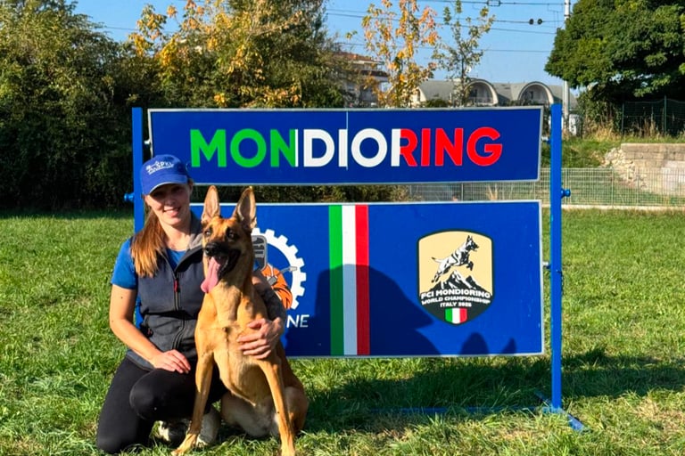 Before focusing on Mondioring, I was active in other dog sports, and prior to that I spent over ten years competing in dressage riding at both national and international levels. This extensive background in performance sport has given me a deep understanding of biomechanics, conditioning, recovery, and the careful balance required to maintain both physical and mental wellbeing in sport animals.
